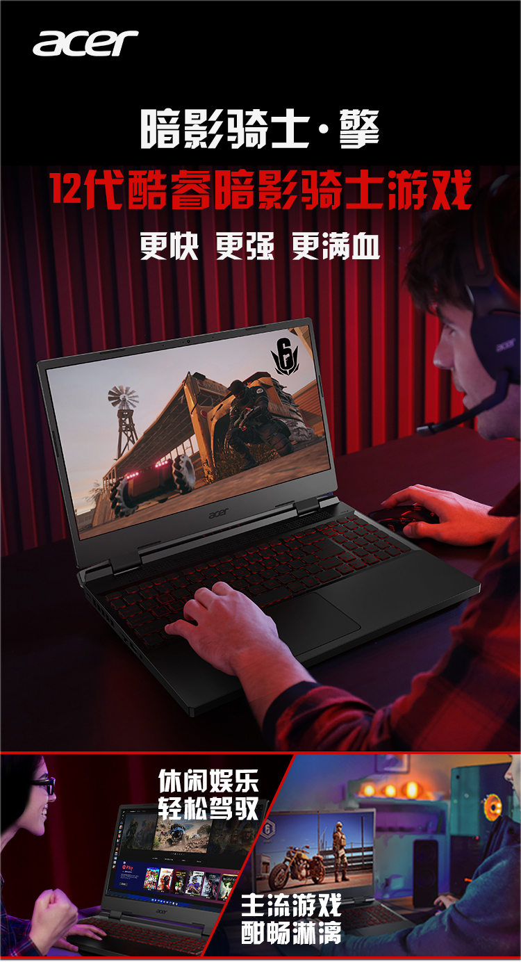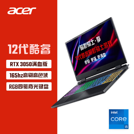 宏碁 新暗影骑士·擎 15.6英寸游戏笔记本电脑(12代酷睿i5-12500H 16G 512G RTX3050满血95W 165Hz高刷高色域)