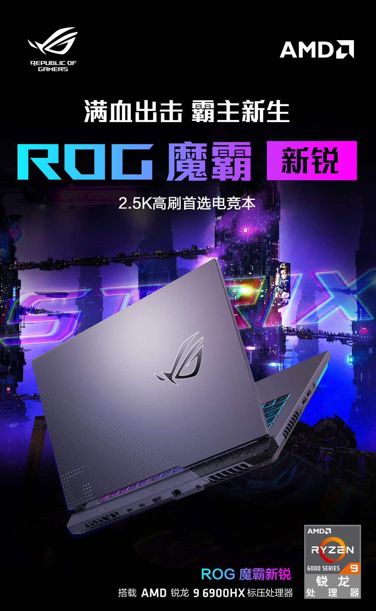 ROG魔霸新锐2022 15.6英寸2.5K 165Hz游戏本笔记本电脑(R9-6900HX 液金导热 16G 512G RTX3060 140W)