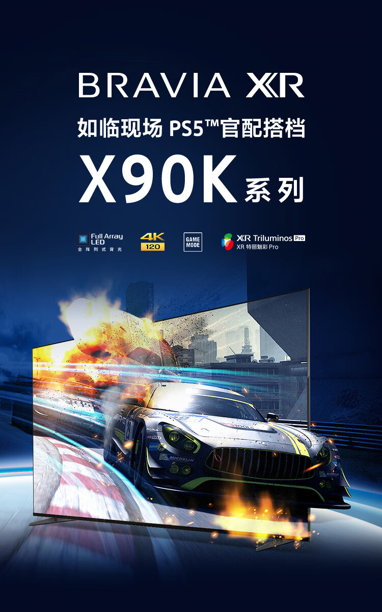 索尼(SONY)XR-75X90K 75英寸 全面屏4K超高清HDR 游戏电视 XR认知芯片 4K/120fps 京东小家 X90J升级款