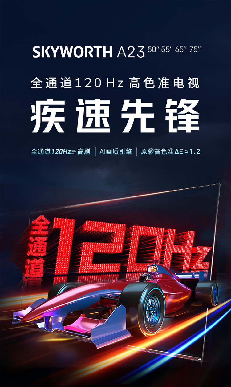 创维电视A23 2023款 50英寸全通道120Hz高刷 HDMI2.1 2+32G START云游戏 4K护眼声控全面屏50A23