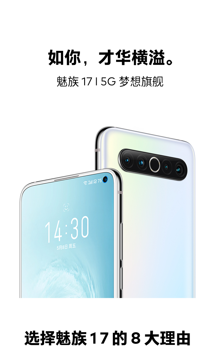 魅族17 8GB+128GB AG 梦幻独角兽 骁龙865 旗舰5G手机 30W快充 6400W后置主摄 90Hz屏幕 支持NFC 游戏手机