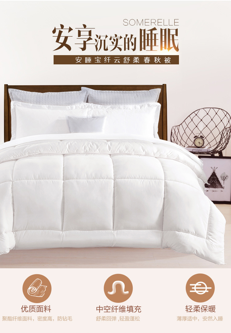 安睡宝(SOMERELLE)被子 英威达科技纤维春秋被芯 舒柔四季盖被棉被空调被 双人 纤云白