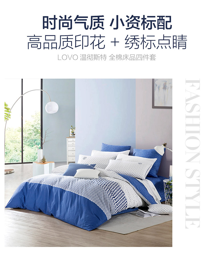 LOVO乐蜗 四件套全棉纯棉简约床品套件 温彻斯特 罗莱生活出品 220*240cm