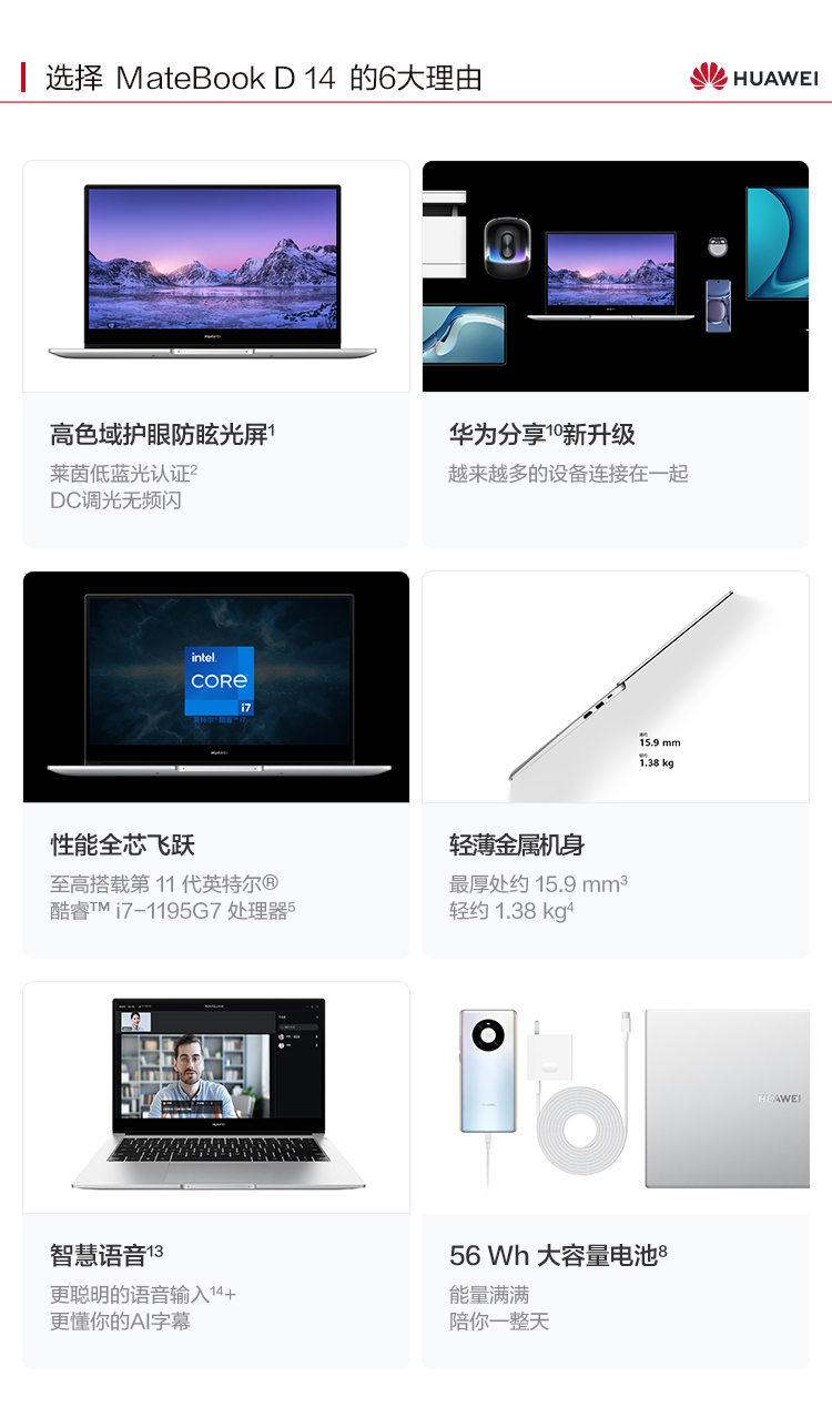 华为笔记本电脑MateBook D 14 2022款 14英寸 11代酷睿 i5 16G+512G 锐炬显卡 轻薄本/护眼全面屏 银