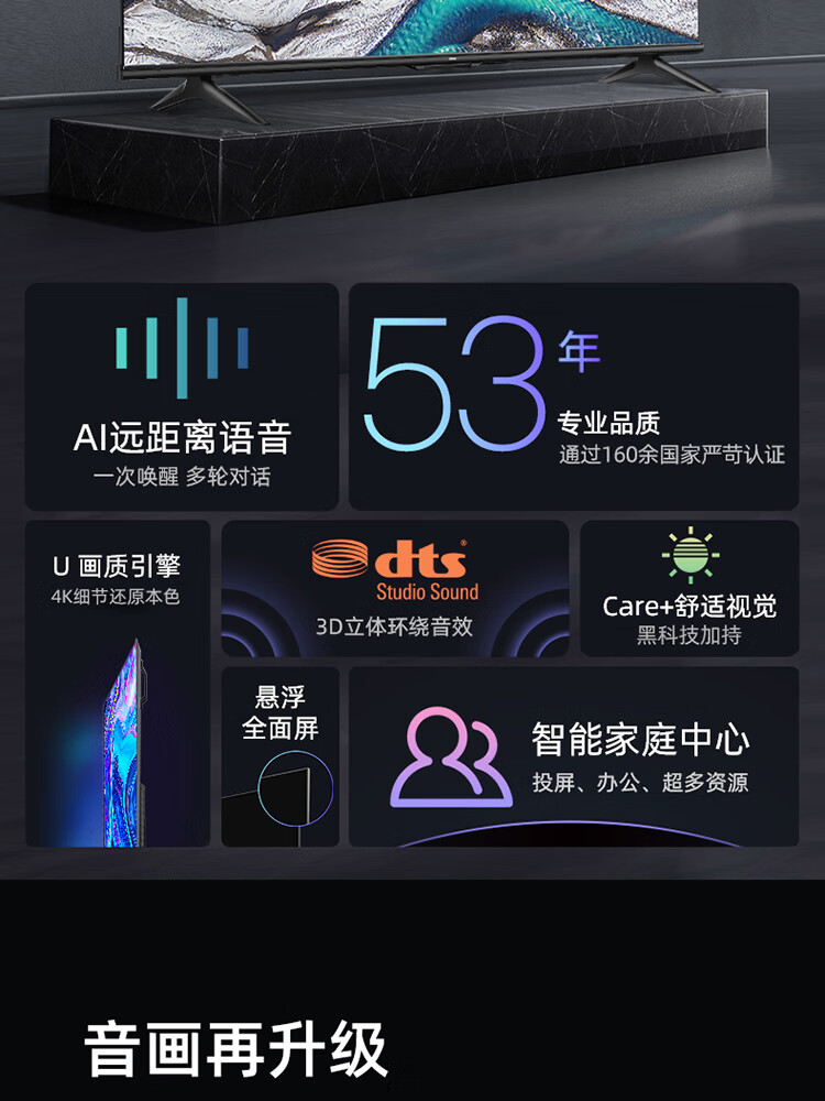 海信电视 43E3G 43英寸 4K超高清护眼智慧屏 超薄悬浮全面屏 远场语音智能液晶平板电视机