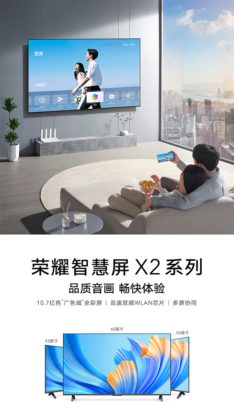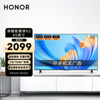 荣耀智慧屏X2 65英寸2G+16G 4K超清多屏协同10.7亿色广色域远场语音全面屏教育游戏电视开关机无广告HN65DNTA