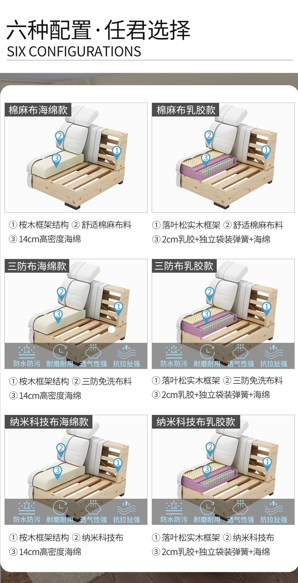 泽恩斯曼 沙发 布艺沙发组合可拆洗现代北欧三人位布沙发 纳米科技布乳胶沙发大小户型客厅简约家具