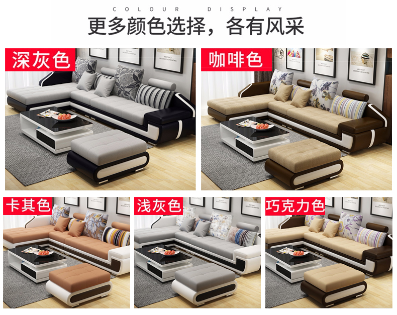 任意3件伴价】中派 沙发 客厅皮布可拆洗布艺沙发组合 颜色备注 双人+贵妃