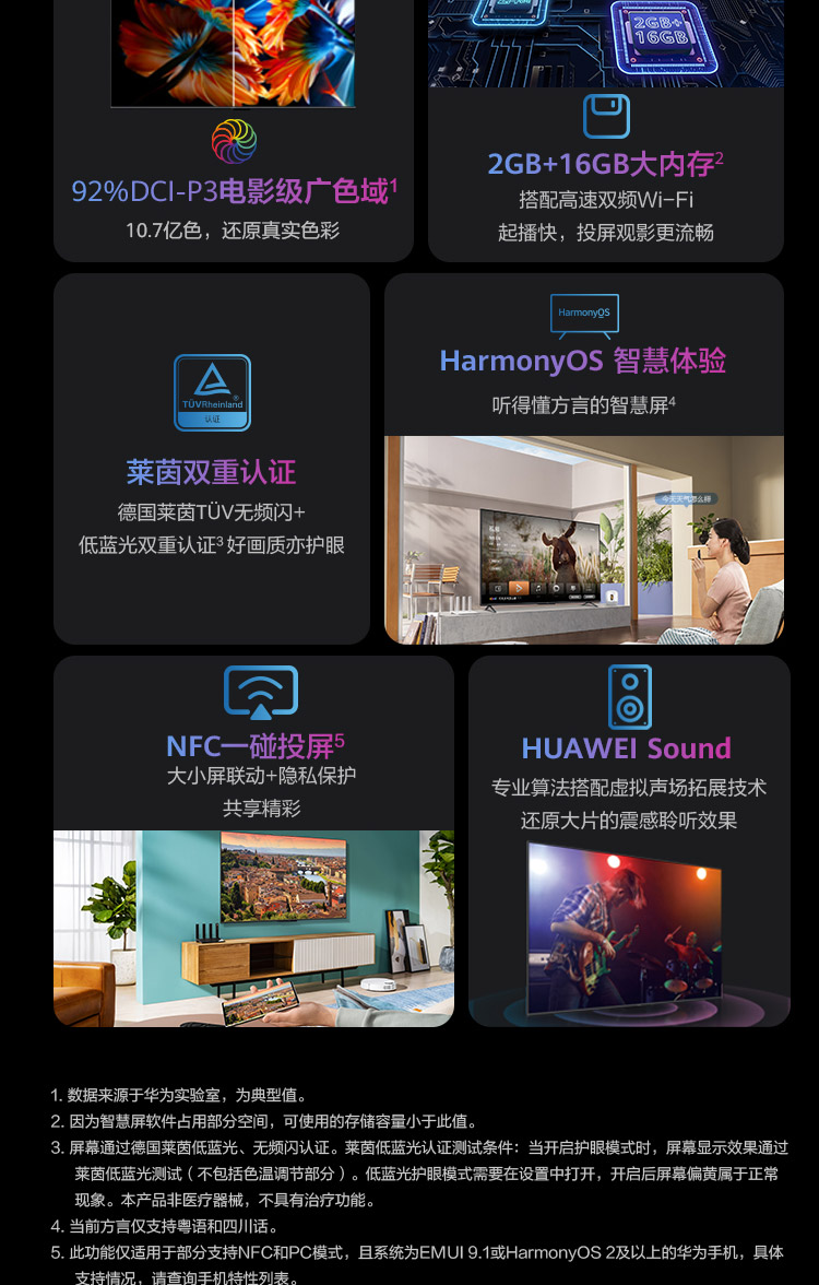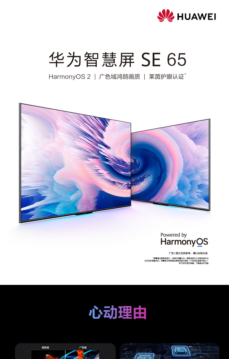 华为智慧屏 SE 65英寸 2+16GB 超薄电视 广色域鸿鹄画质 4K超高清智能液晶电视机HD65DESA【HarmonyOS 2】