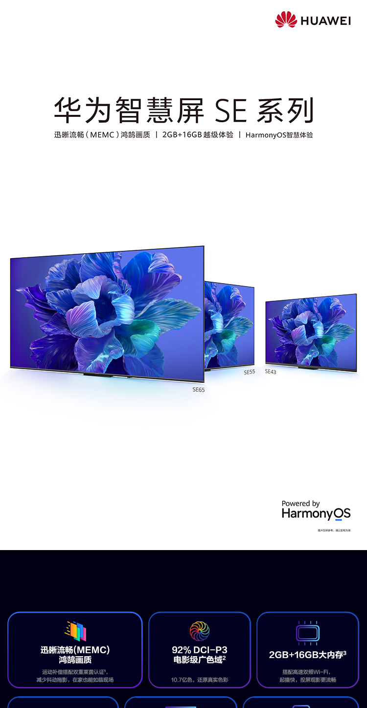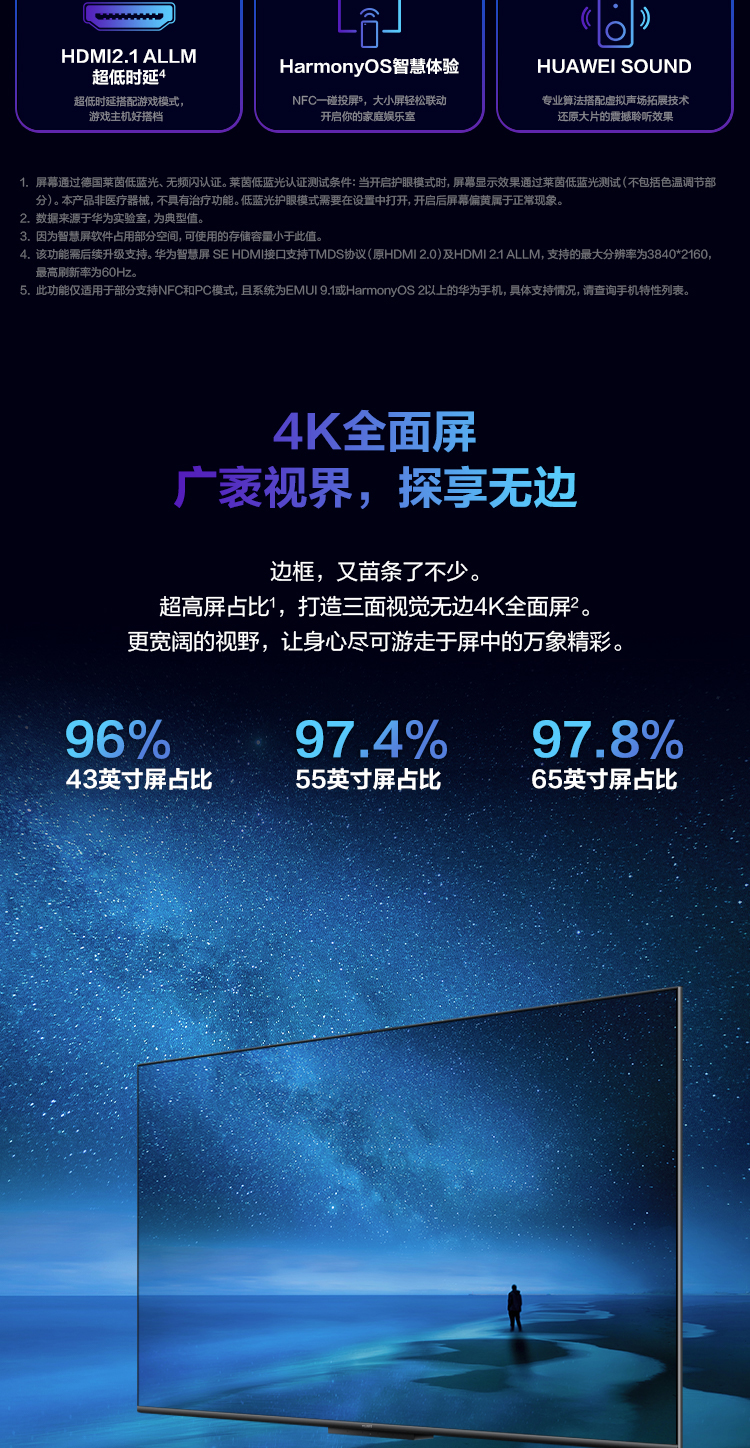 华为智慧屏 SE55 MEMC迅晰流畅 55英寸超薄全面屏 4K超高清智能电视 2GB+16GB 星际黑HD55KHAA